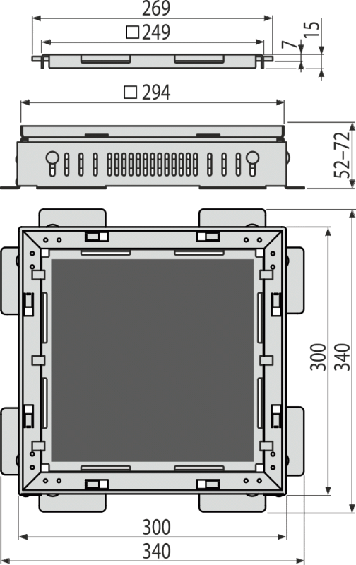Aufstockelement des Aufsatzes + Rost für die Fliesenverlegung 300×300, verzinkt