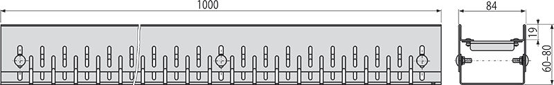 • Einstellbarer Körper der Entwässerungsrinnen 60-80 mm