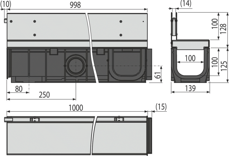 - Wasserzufuhr von der Seiter der Rinne an vier Stellen – Ø50 mm