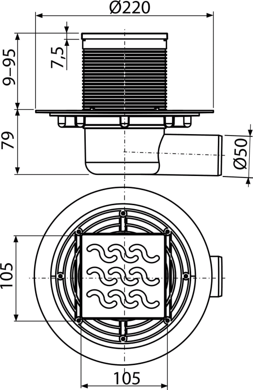 | APV0300 | Bodenablauf Aufsatz, Rost 105×105 mm |
