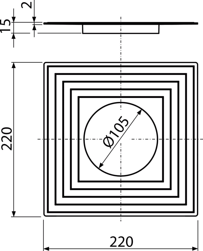 | APV2321 | Bodenablauf 105×105/50/75 mm mit einem senkrechten Abgang, Edelstahl Rost, Kombi-Geruchsverschluss SMART |
