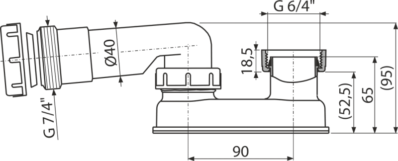 - Anschluss an Abflussrohr Ø40 mm oder Gewinde 7/4“