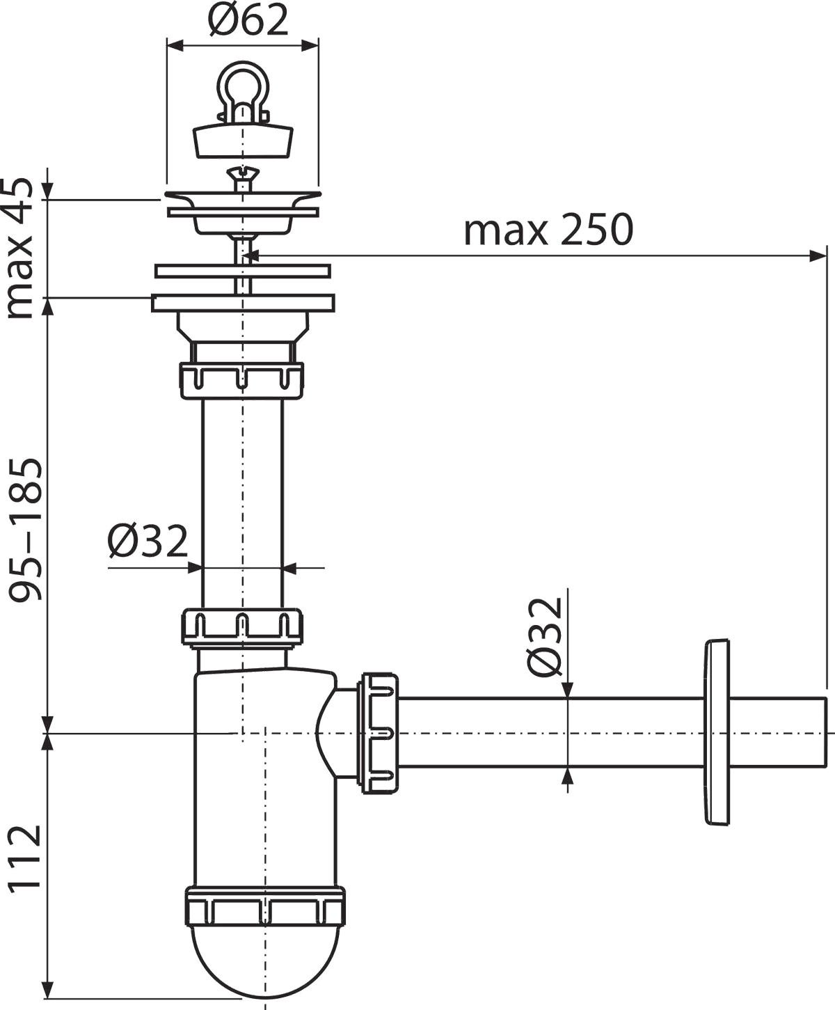 Flaschengeruchverschluss für die Waschbecken DN32 mit einem Edelstahlgitter DN63