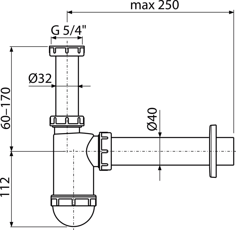 - Anschluss an Abflussrohr Ø40 mm