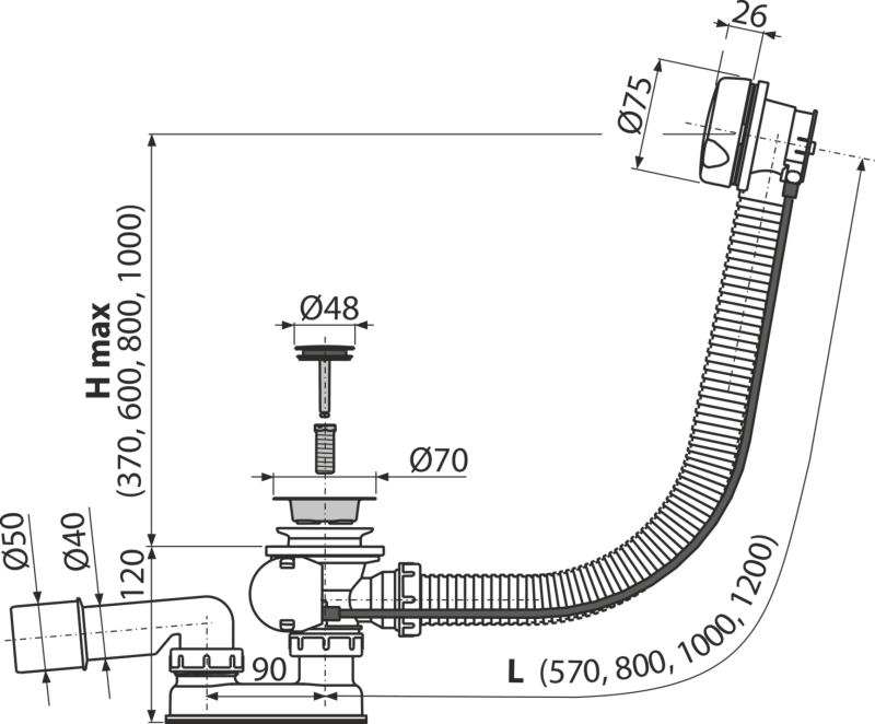 - Für Badewannen mit Ablaufloch Ø52 mm