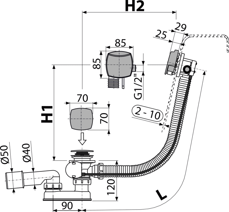 Badewanne Ab- und Überlaufgarnitur Automat mit einer Füllfunktion, verchromt