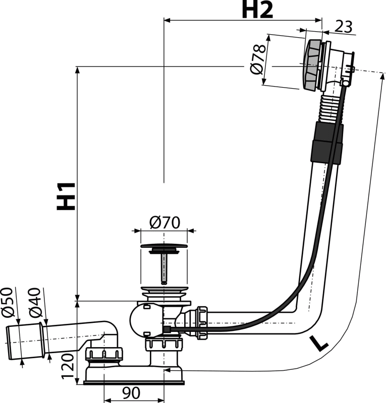 Badewanne Ab- und Überlaufgarnitur Automat komplett, Metall