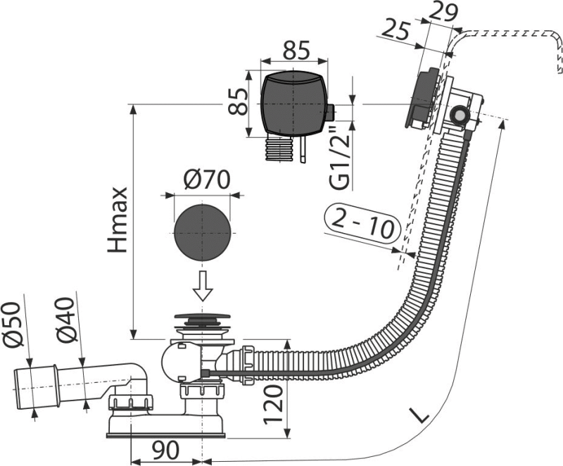 - Für Badewannen mit Ablaufloch Ø52 mm
