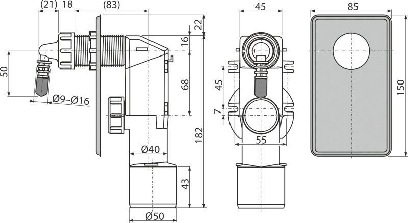 - Siphon-Körper mit Kombi - Geruchsverschluss