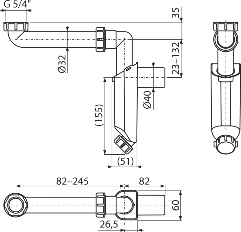 - Anschluss an Abflussrohr Ø40 mm