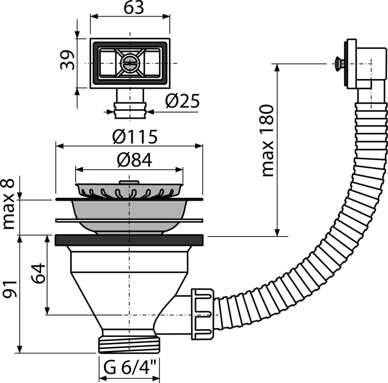 - Anschlussgewinde an Spülbeckensiphon 6/4 "