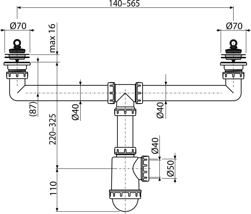 - Ablauf für den Anschluss an Abflussrohr Ø 50 mm oder 40 mm vorbereitet