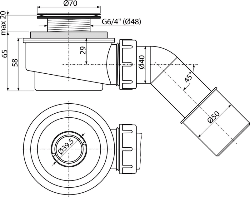 - Für Duschwannen mit einem Ablaufloch Ø52 mm