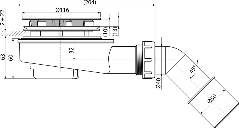 - Für Duschwannen mit einem Ablaufloch Ø90 mm