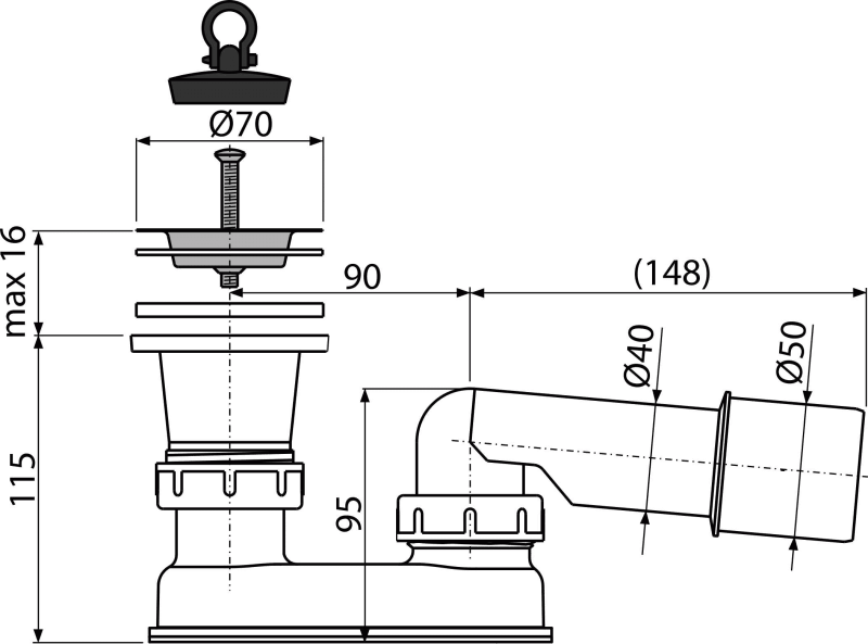 - Für Duschwannen mit einem Ablaufloch Ø50 mm