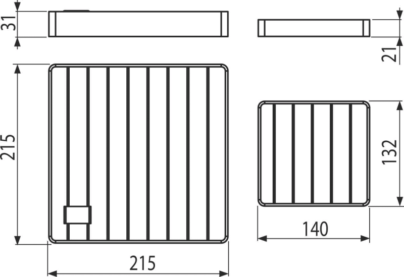 - Rostabmessungen 215 × 215 mm, 132 × 140 mm