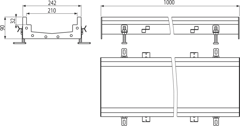 - Das ganze System ist fest im Beton durch einfaches verstellbare Füssen fest im Beton verankert.