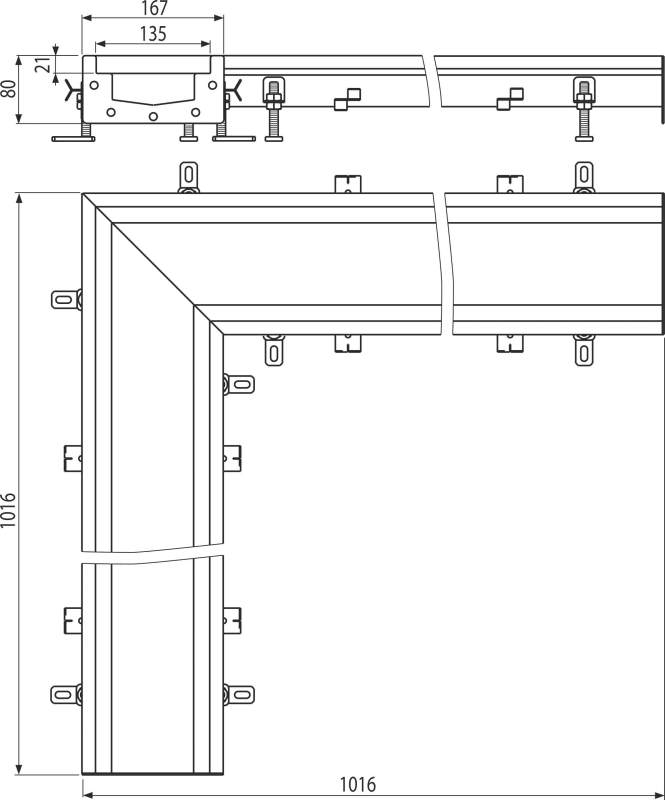 - Das ganze System ist fest im Beton durch einfaches verstellbare Füssen fest im Beton verankert.