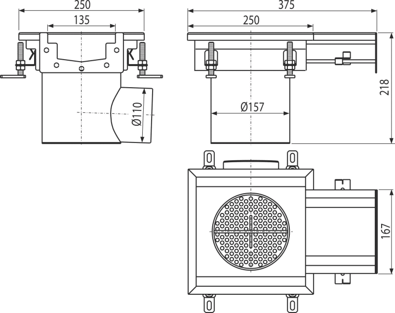 Industriekastenablauf 250×250-135, Edelstahl AISI 316L
