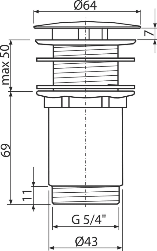 Ablaufventil für die Waschbecken 5/4" Ganzmetal, großer nicht verschließbarer Stopfen, für die Waschbecken ohne Überlauf, Weiß-Glanz