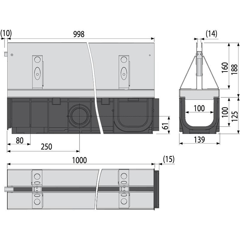 Schlitzrinne, symmetrisch, 160 mm, Rost verzink