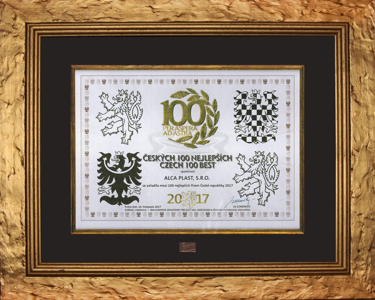 Die Besitzer der Firma Alcaplast Radka Prokopová und František Fabičovic haben wieder einen weiteren Grund zu feiern. Der größte Hersteller von Sanitärtechnik in Mittel- und Osteuropa gehört nun zu den hundert besten tschechischen Unternehmen. Der Wettbewerb wurde bereits zum zweiundzwanzigsten mal von der paneuropäischen Gesellschaft für Kultur und Bildung, Comenius, abgehalten. Die Preisverleihung, für „ Die 100 Besten Tschechiens“ fand am Freitag den 24. November 2017 um 18 Uhr im spanischen Saal der Prager Burg statt. Alcaplast belegte den 76zigsten Platz.